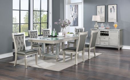 Antique Traditional Dining Table and 6 Side Chairs Rectangle Table Top w Glass insert Leaf Tufted Chairs Kitchen Formal 7pc Set Dining Room Furniture