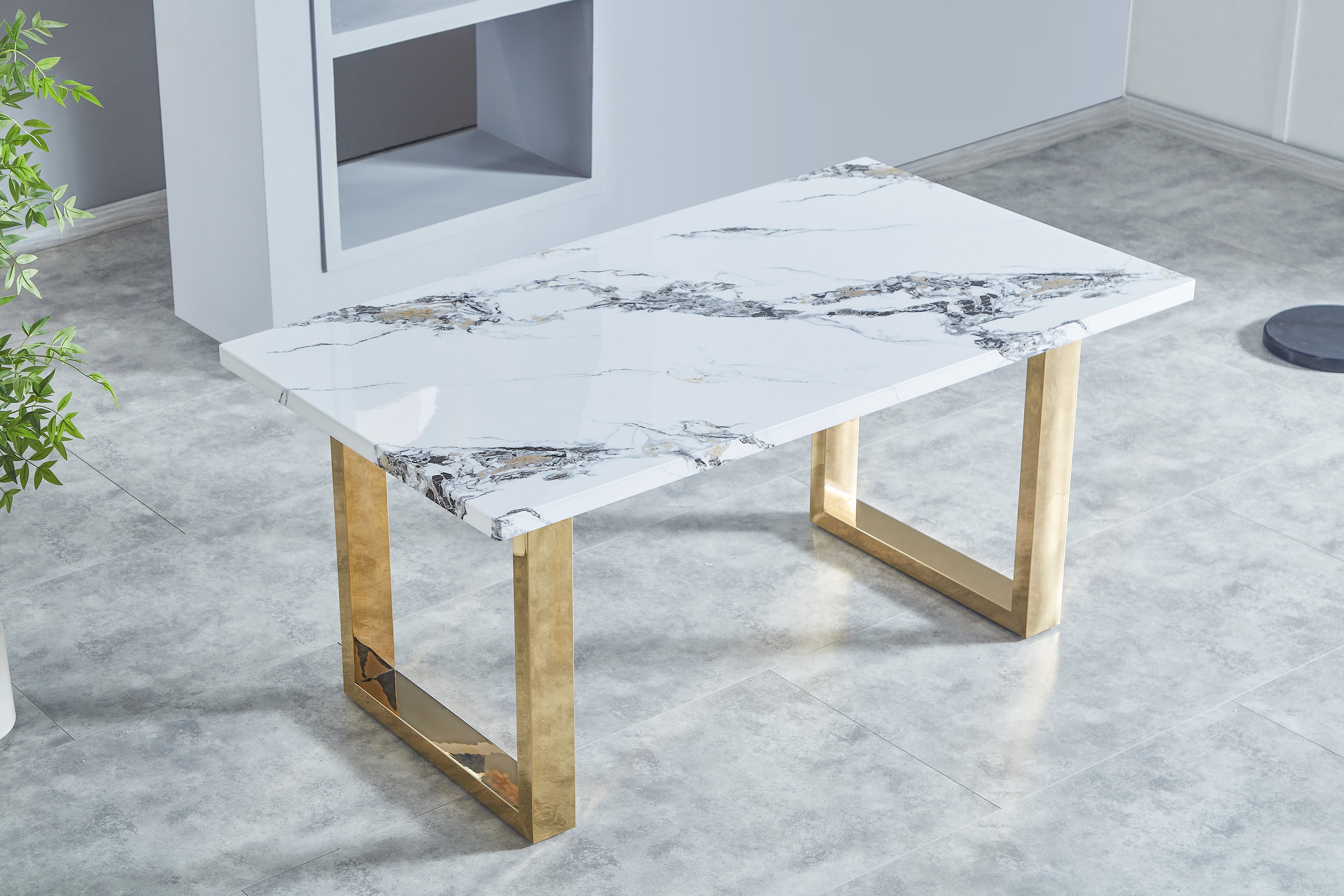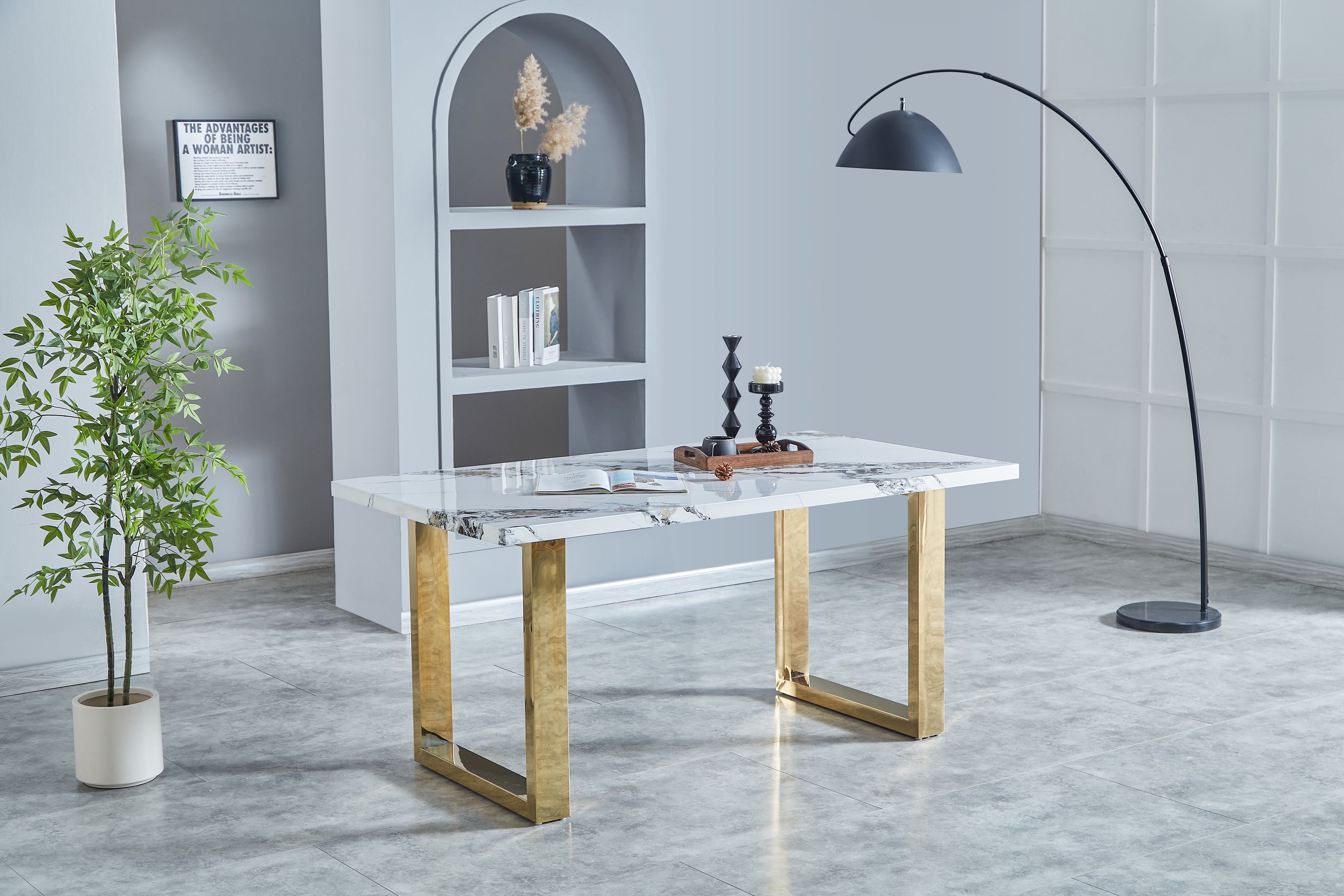 Home > Luxurious Faux Marble MDF Dinning Table for 6 or 8, Rectangular 63"L*35.4"W*29.8"H, Thick and Solid Stainless Steel Legs Modern, sturdy and du rable