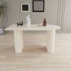 3.Cream finish coffee table: This table features a fashionable milky white finish, with a luxurious cream tabletop and thick, round legs carved with delicate patterns like waves, adding a touch of delicacy to any dining space.