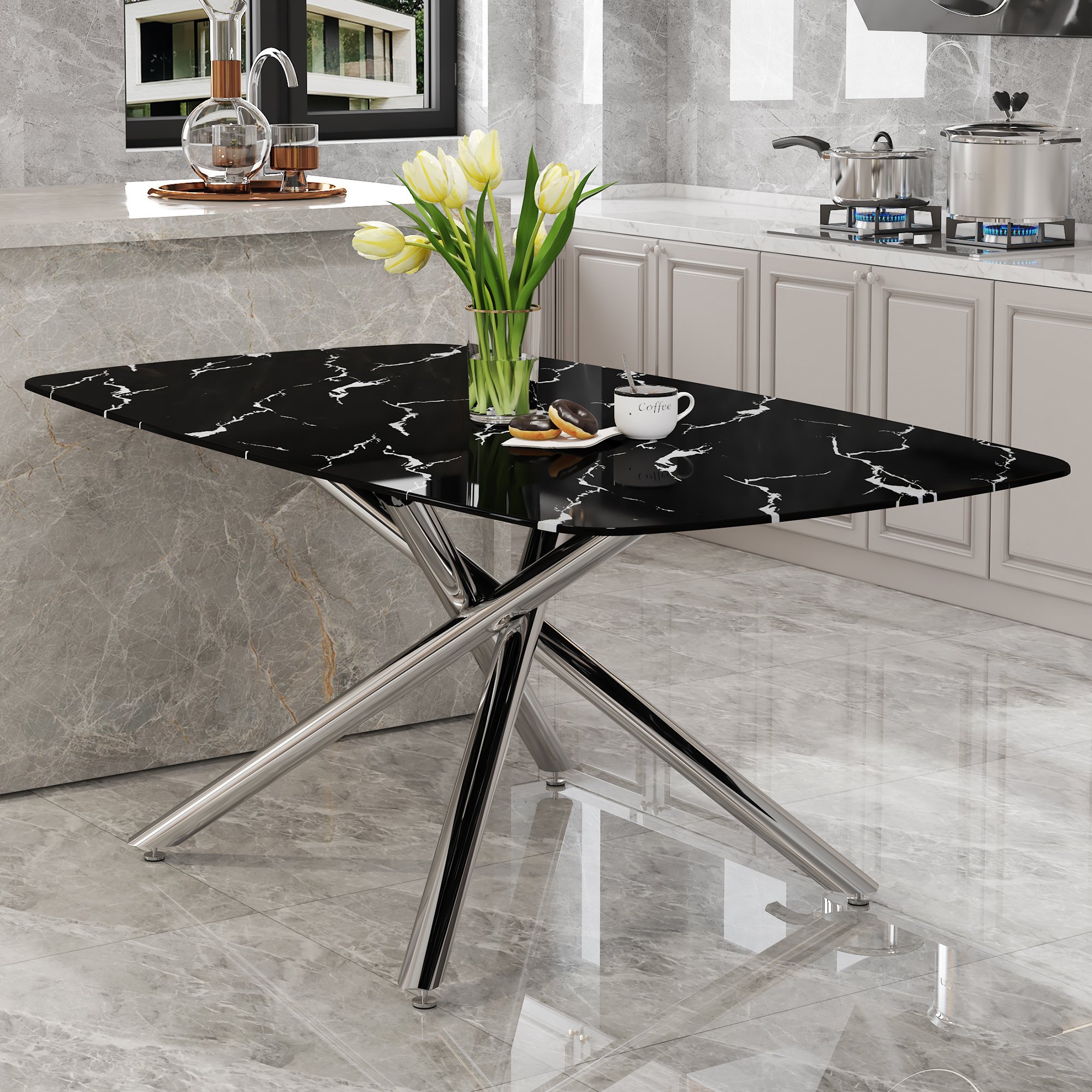 Large modern minimalist rectangular dining table with 0.39 "imitation marble black tabletop and silver metal legs, suitable for kitchen, dining room Large modern minimalist rectangular dining table with 0.39 "imitation marble black tabletop and silver metal legs, suitable for kitchen, dining room Large modern minimalist rectangular dining table with 0.39 "imitation marble black tabletop and silver metal legs, suitable for kitchen, dining room Large modern minimalist rectangular dining table with 0.39 "imitation marble black tabletop and silver metal legs, suitable for kitchen, dining room Large modern minimalist rectangular dining table with 0.39 "imitation marble black tabletop and silver metal legs, suitable for kitchen, dining room Large modern minimalist rectangular dining table with 0.39 "imitation marble black tabletop and silver metal legs, suitable for kitchen, dining room