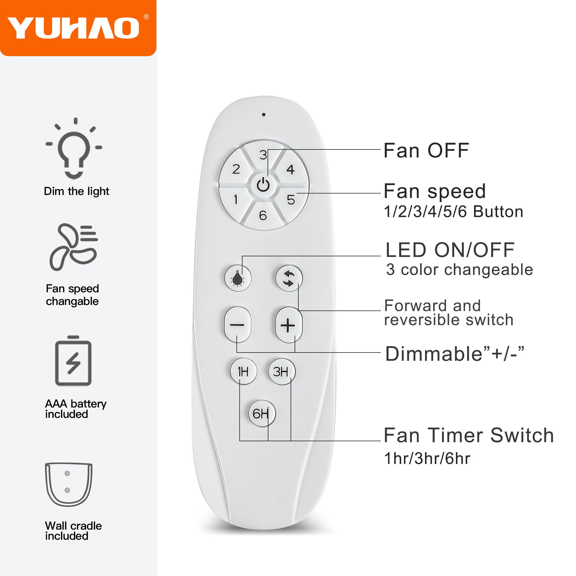 3.Easy control function: use the remote control to adjust the fan speed and dim the light