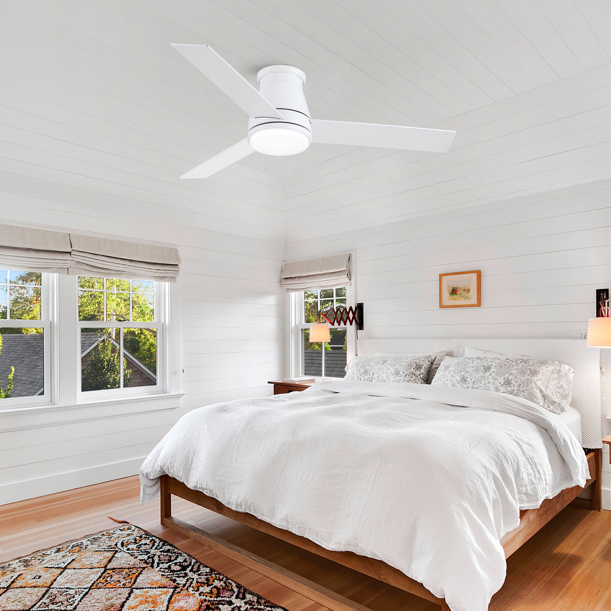 Amici 48 in. Indoor White Low Profile Standard Ceiling Fan with Bright White Integrated LED Light Kit, Remote Included