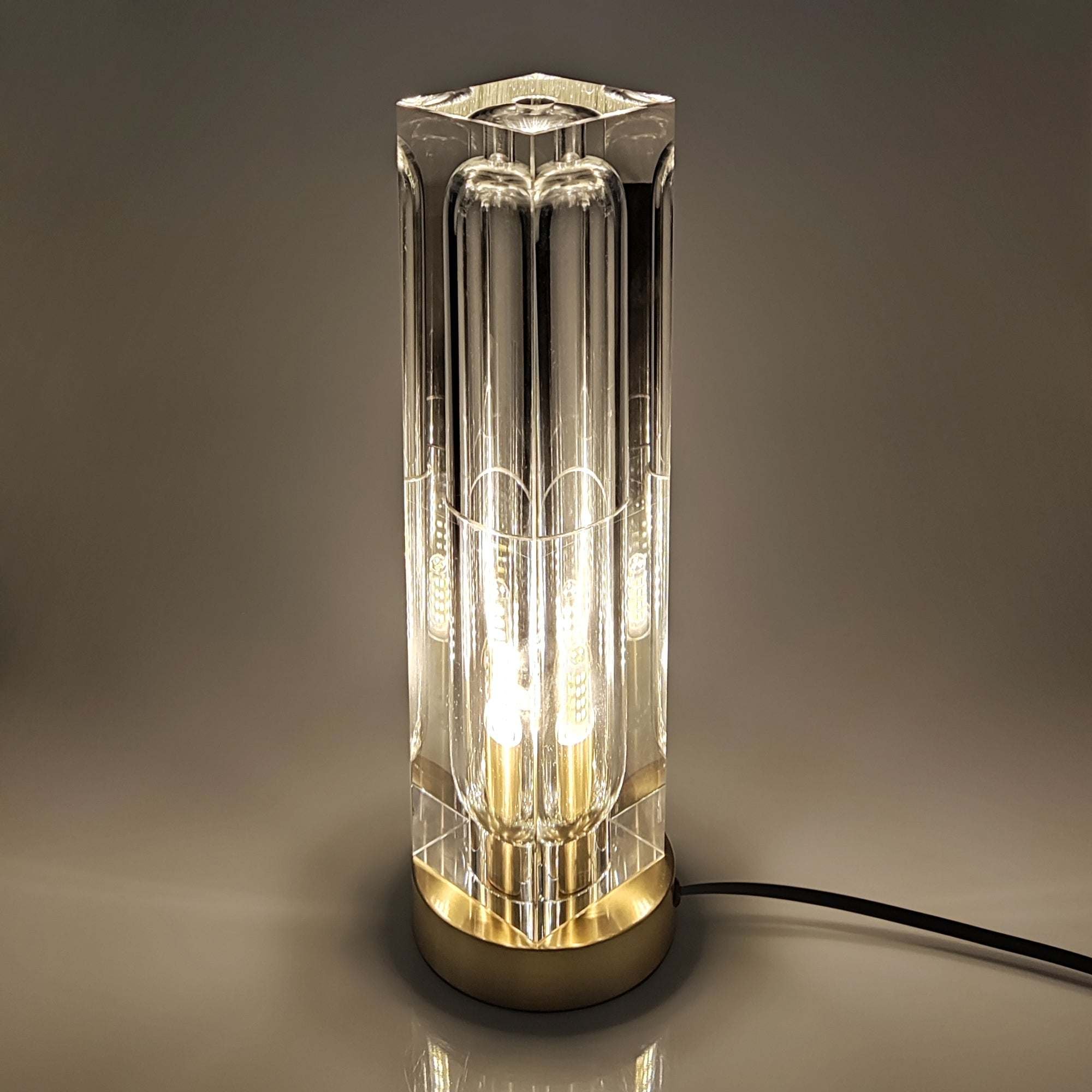 Add classic style and distinction to your space with the Lucent Crystal LED Lamp. Featuring a stylish; rectangular crystal lampshade; this table lamp offers a classic appeal while adding timeless beauty to any corner of your home. The combination of a brass base and clear crystal lamp shade gives it a sophisticated but modern look even when not illuminated.