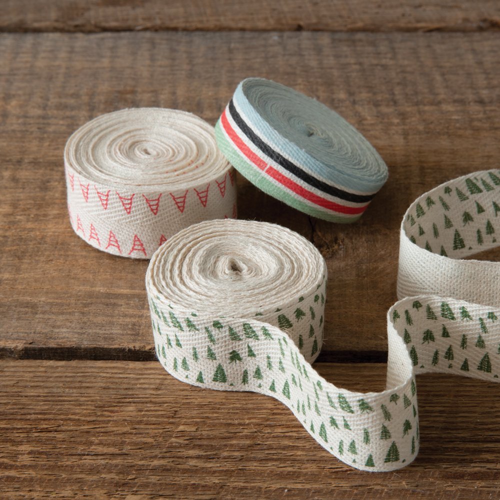 Embellish your presents with decorative fabric ribbon that will make your family and friends smile. This pack of ribbon includes 3 options of Christmas ribbon. Each roll includes 5 yards of ribbon made out of 100% cotton.
